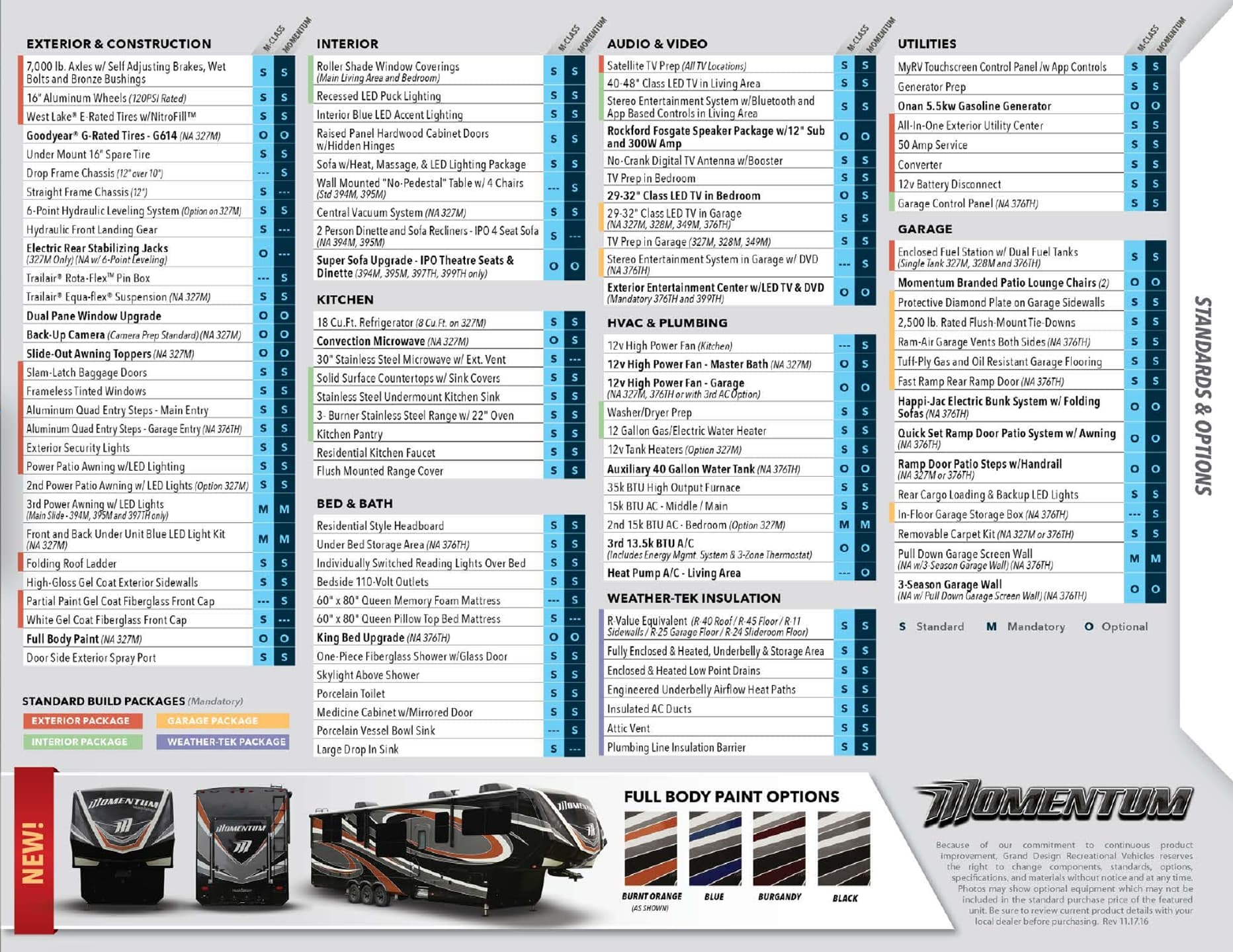 2017 Grand Design Momentum Luxury Fifth Wheels Toy Haulers Brochure
